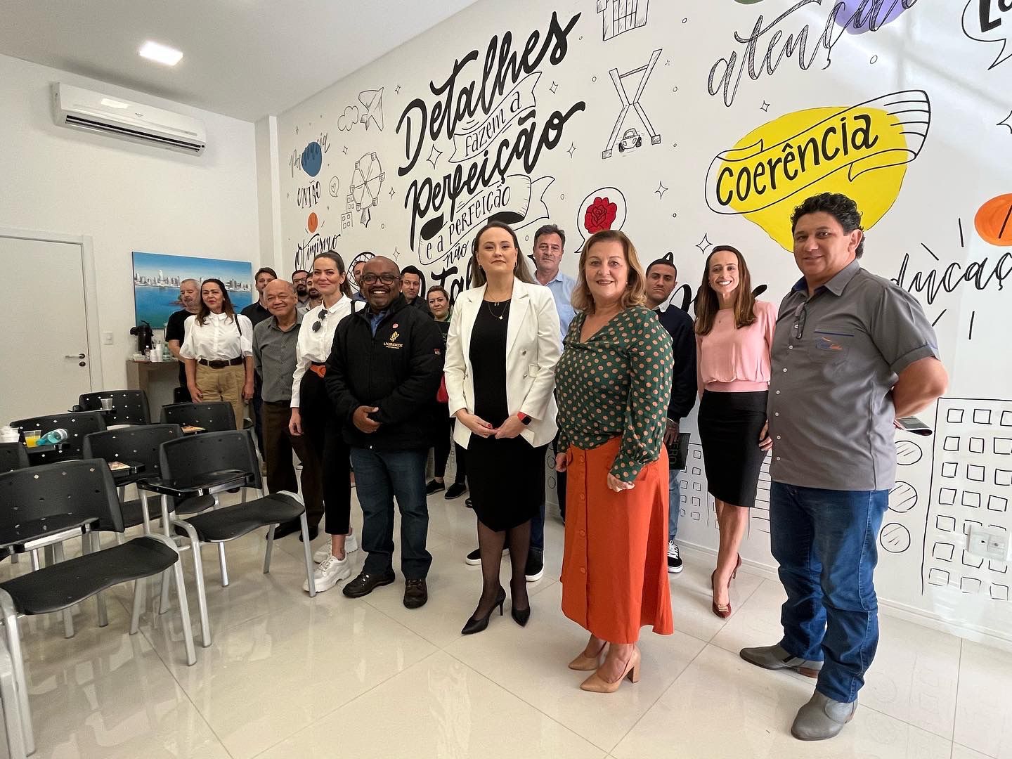 A cerimônia de abertura foi conduzida pelo jornalista Thiago Dias, do SECOVI NORTE SC, e contou com a participação de figuras ilustres como Carla Merkle, conselheira consultiva do CRA-SC, representando o presidente Djalma; Maykon Bini, gestor da Orsegups; e Jorge Arnaldo Laureano, presidente do SECOVI NORTE SC.