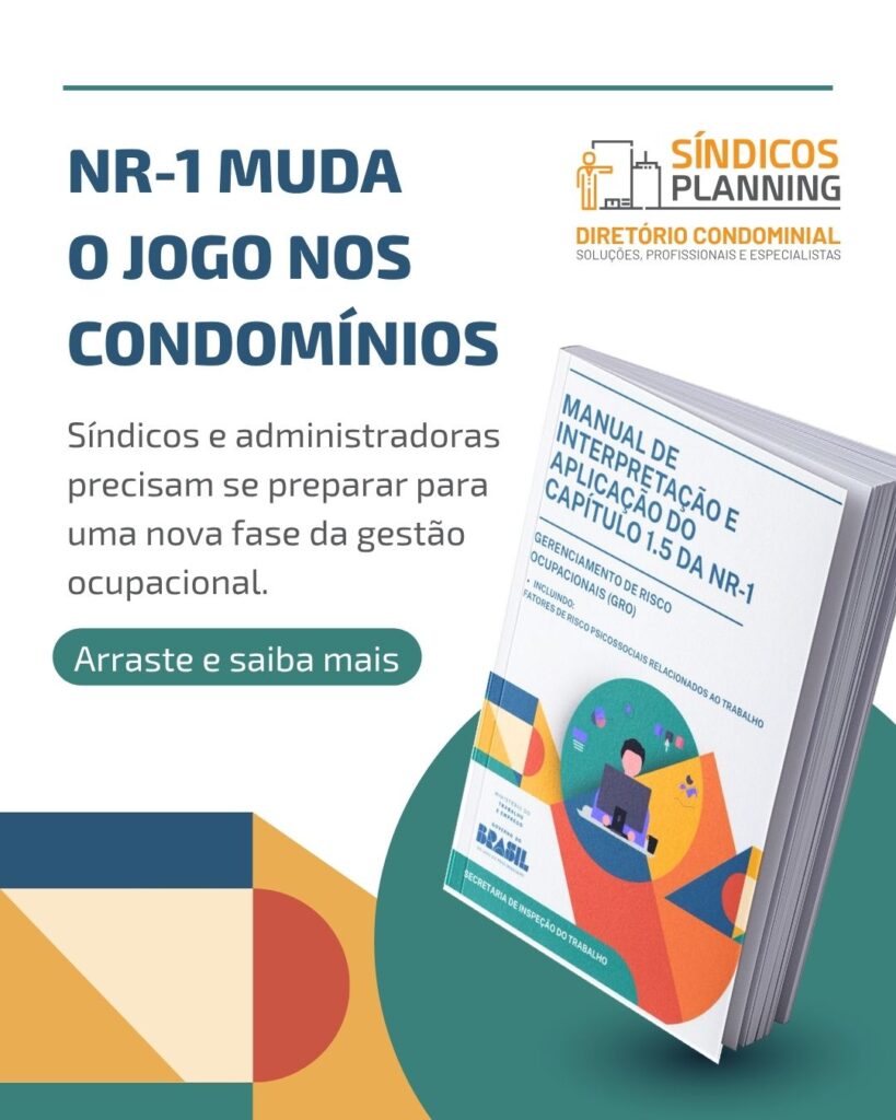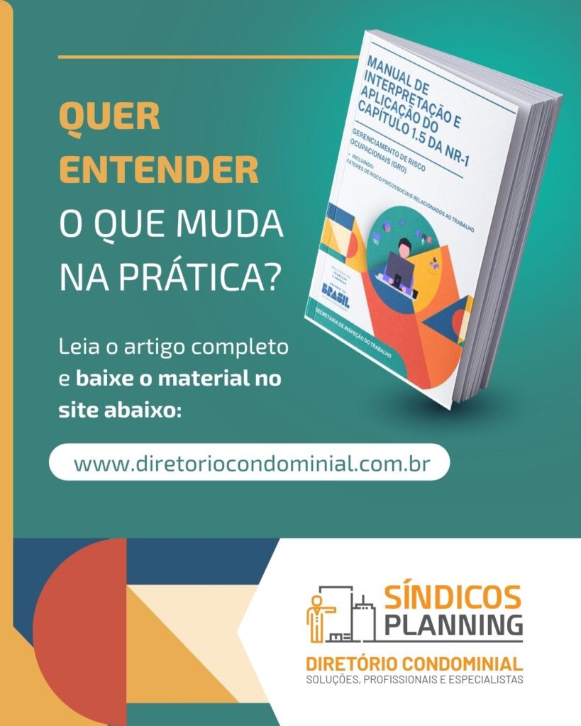 No ambiente condominial, pressão de moradores, conflitos recorrentes, ordens desencontradas, cobrança excessiva, jornadas desgastantes, isolamento em postos de trabalho, falta de retorno e pouca clareza sobre atribuições não são situações raras. A partir da nova lógica da NR-1, esse tipo de realidade precisa passar a ser observado como parte da gestão de riscos ocupacionais, e não apenas como problema de relacionamento ou dificuldade pontual de gestão. Isso decorre do fato de que o manual determina que o GRO contemple todos os riscos, inclusive os fatores ergonômicos e os fatores de risco psicossociais relacionados ao trabalho.