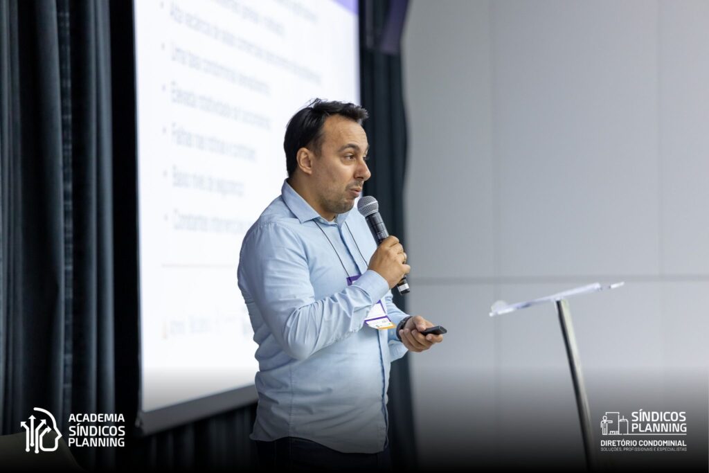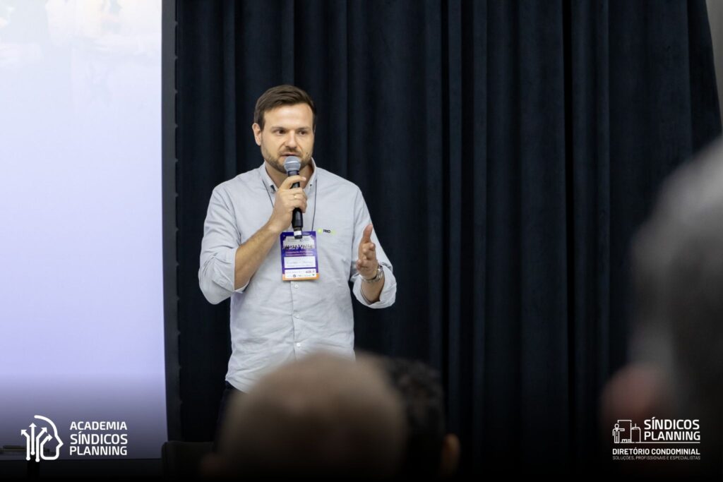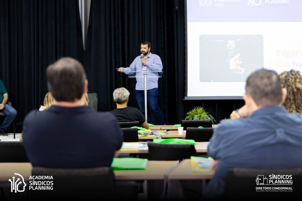 No terceiro case, Edgar Lucas de Souza, da LF Síndico, apresentou a transformação estrutural do Condomínio Blumengartens. Um exemplo claro de como planejamento financeiro estruturado, fundo de investimento permanente e visão de longo prazo podem reverter cenários críticos e gerar valorização real.