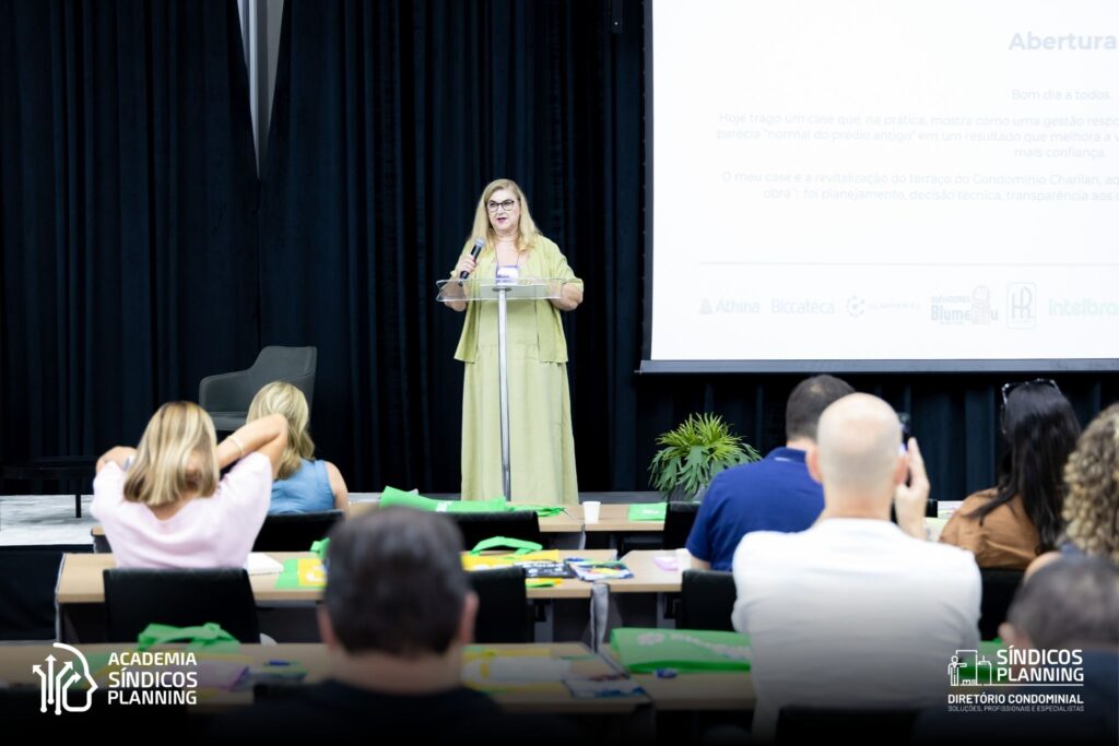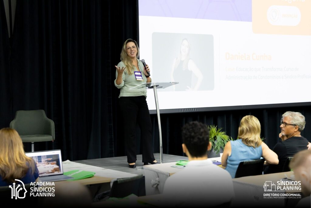 A abertura dos cases ficou por conta de Daniela Gabriel de Oliveira Gomes da Cunha, da Condominium Síndicos Profissionais, vencedora na categoria Inovação do Prêmio Síndicos Planning 2025, com o projeto Educação que Transforma — curso pioneiro que já formou mais de 300 síndicos e contribuiu para elevar o nível da gestão em Santa Catarina. Desde 2024, o curso integra oficialmente a programação da Academia Síndicos Planning, dando continuidade ao legado de profissionalização e ampliando seu impacto no mercado.